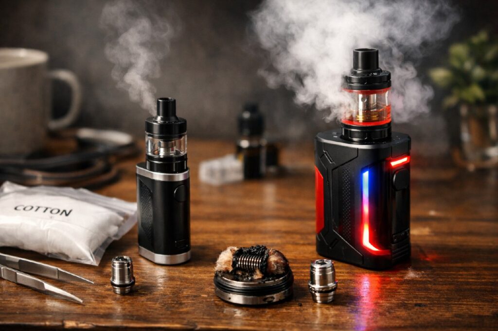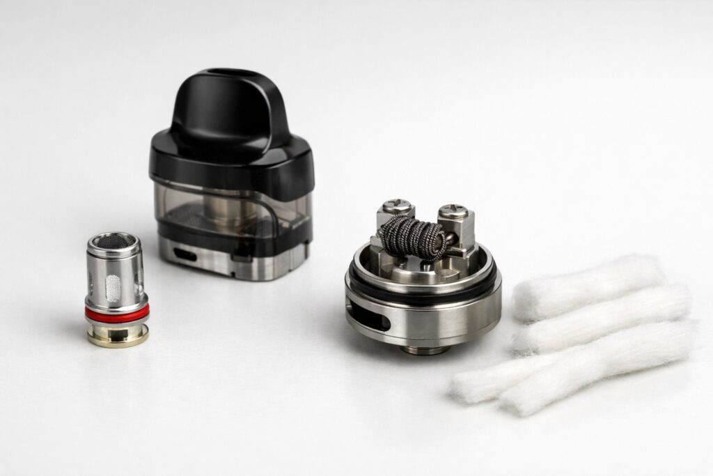 После прекращения подачи тока спираль остывает, а фитиль снова насыщается жидкостью. Этот цикл повторяется при каждой затяжке. Именно поэтому состояние испарителя напрямую влияет на стабильность работы устройства и ощущения при парении.
