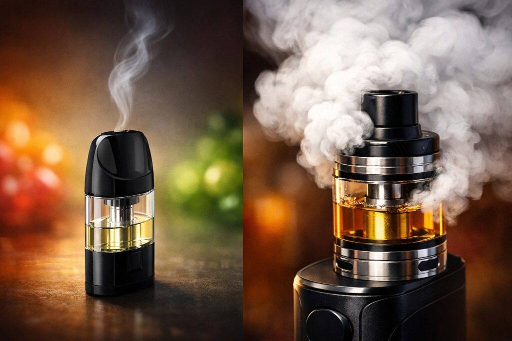 Потому что вкус зависит не только от жидкости, но и от устройства: мощности, типа испарителя, затяжки. В POD-системах аромат обычно ощущается ярче, а в баках — мягче, спокойнее.